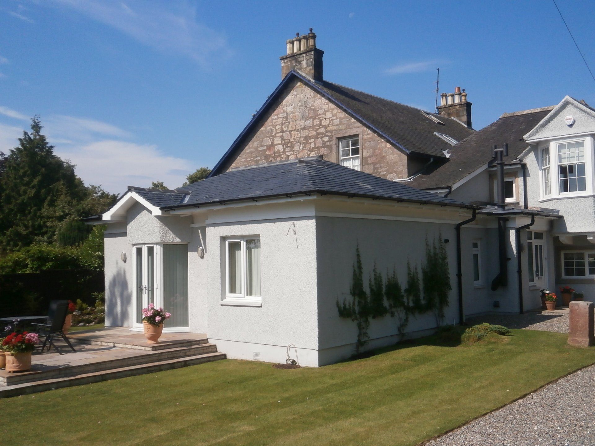 A new pitched roof was constructed over the existing flat roof using natural slate and lead effect single membrane finishes to reflect the character of the existing listed building to which it was attached